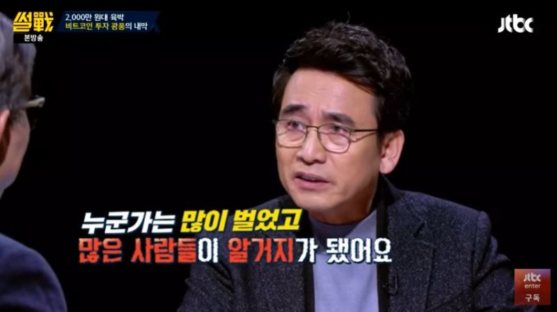 지난 2018년 JTBC '썰전'에 출연한 유 전 이사장은 "(비트코인은) 돈독이 오른 사람들이 빠져드는 '바다이야기'같은 것"이라면서 "잭팟터지면 돈 쏟아지는 것과 비슷하다"고 말했다.