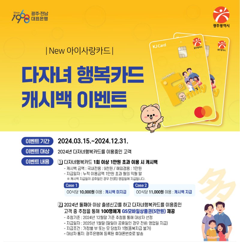 광주시, 다자녀행복카드 캐시백 이벤트