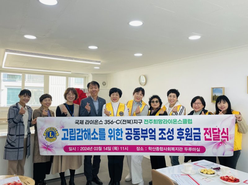 임영례 전주희망라이온스클럽 회장은 “학산종합사회복지관에서 공동부엌 사업에 후원을 받고 있다는 말을 듣고, 회원들끼리 모금을 통해 후원을 할 수 있어 뜻깊게 생각한다"며 "이를 계기로 앞으로도 소외된 계층에 다양한 봉사를 해 나가겠다”고 말했다.
