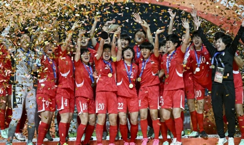 (서울=뉴스1) 이재상 기자 = 북한 20세 이하(U-20) 여자 축구대표팀이 2024 AFC U-20 여자 아시안컵 정상에 올랐다.