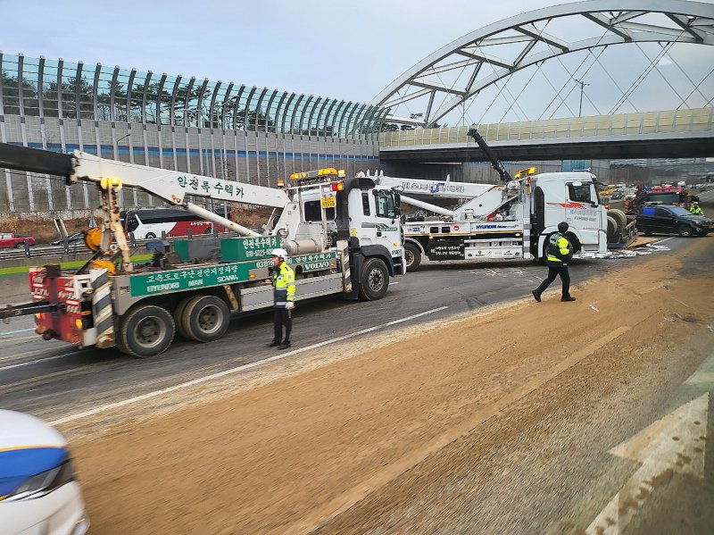 이로 인해 1~4차로의 차량이 통제돼 극심한 차량 정체가 빚어지고 있다.