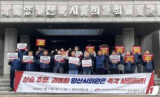 (양산=뉴스1) 강정태 기자 = 직원 성추행 혐의로 피소된 경남 양산시의회 김태우 의원이 25일 의원직 사퇴 의사를 밝혔다.