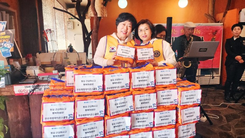 [전주=뉴시스]최정규 기자 = 전북 전주희망라이온스클럽은 전주시 효자4동 관내 가마돈음식점에서 경로당 어르신 중식 제공에 사랑의 배식 봉사를 실시했다고 25일 밝혔다.