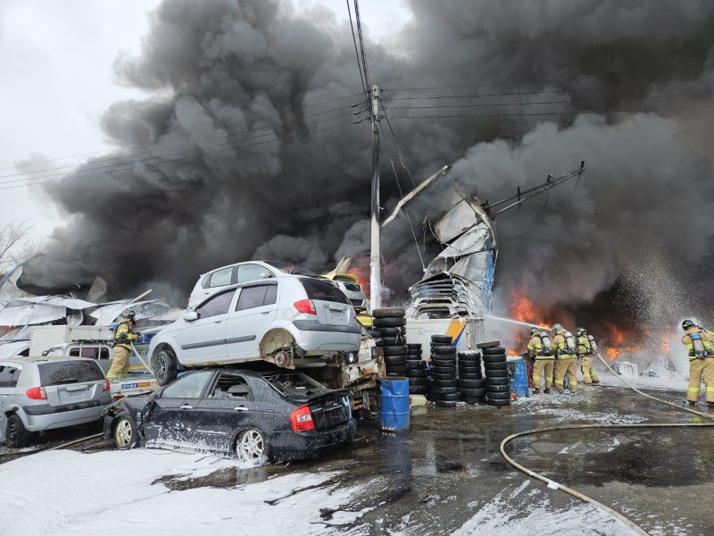 (나주=뉴스1) 이수민 기자 = 전남 나주시의 한 폐차장에서 불이 나 건물과 차량이 타는 등 3400여만 원의 재산 피해가 발생했다.