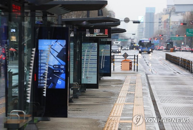 같은 시각 서울 관악구 낙성대역 인근 한 정류장은 버스를 기다리는 시민 없이 텅 비어있었다.
