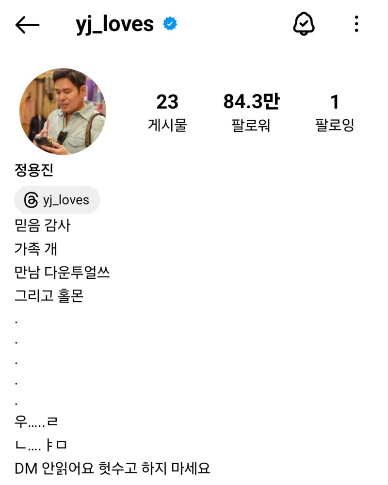 이와 별개로 자신의 계정을 소개하는 글과 프로필 사진은 그대로 남겨뒀다. 정 회장은 '믿음 감사 가족 개 만남'과 '멸공'을 거꾸로 적은 문구를 적어놨다.