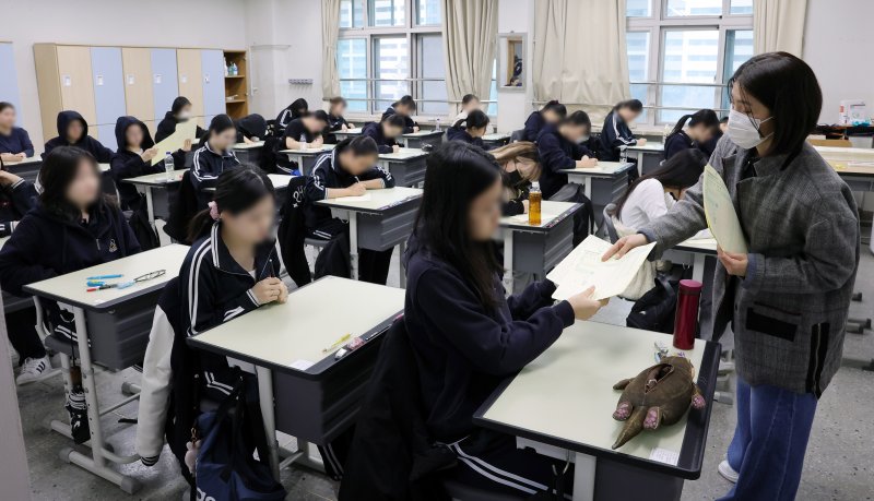 (서울=뉴스1) 남해인 기자 = 2025학년도 대학수학능력시험(수능)에 앞선 첫 모의고사인 서울시교육청 주관 3월 전국연합학력평가(학평)가 28일 진행됐다.