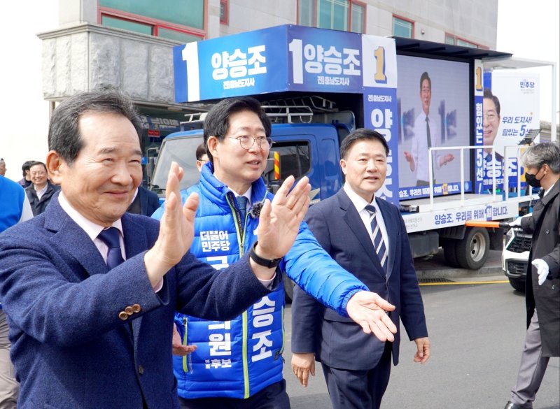 정 총리는 “양 후보는 제가 유일하게 존경하는 정치인이자 대표적인 양반 정치인으로 대한민국의 품격을 높일 사람”이라며 “도지사 경력의 양 의원을 5선 국회의원에 당선시키면 지도자 반열에 올라가 충청권 대망론을 실현할 수 있을 것”이라고 말했다.