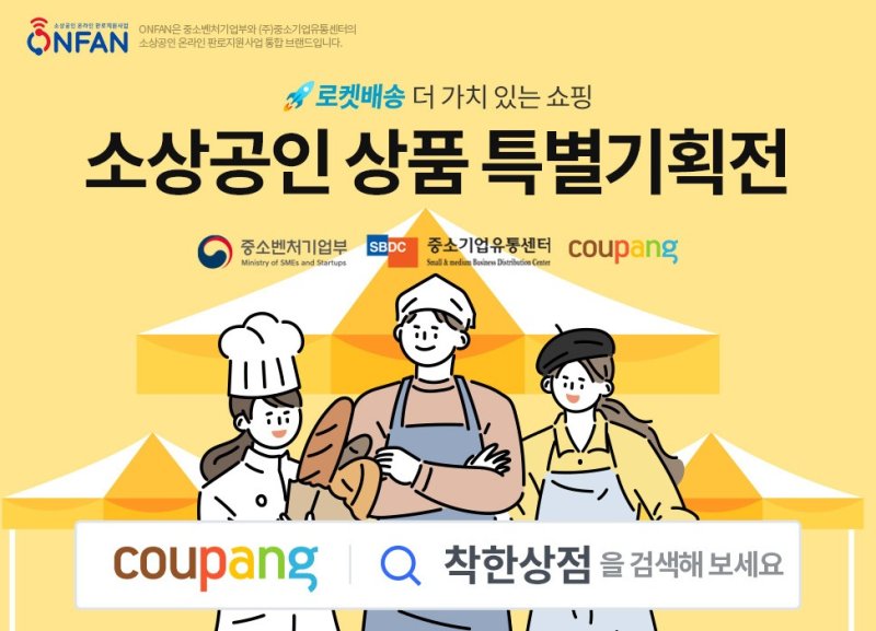 박대준 쿠팡 신사업부문 대표는 "중소상공인 특별기획전은 매년 성공적인 성과를 거둬왔다"며 "쿠팡은 앞으로도 유관 기관 및 지자체와 적극 협업해 중소상공인들과의 상생행보를 위한 적극적인 지원에 앞장서겠다"고 말했다.
