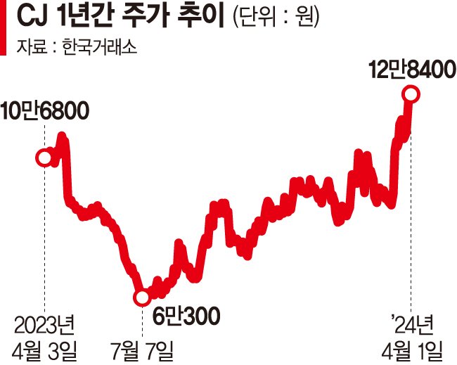 한편 CJ는 오는 4일 배당기준일을 맞는다. 주당배당금은 3000원으로 배당성향은 90.8%, 이날 종가 기준으로 시가배당률은 3.9% 수준이다.