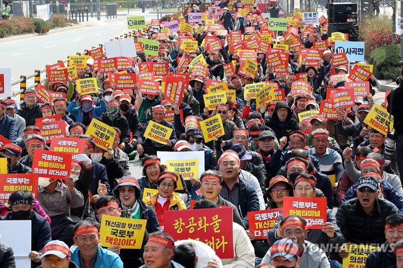 (세종=연합뉴스) 이주형 기자 = 대구경북신공항 화물터미널 설치 관련 국토교통부 규탄 집회를 진행하던 집회 관계자가 할복하는 사건이 발생했다.