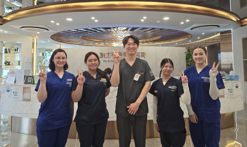 이번 교환학생 4명은 5일 365바른약속치과의원 창원유니시티점 진료실을 둘러보고, 진료과정을 참관하면서 한국의 치과진료 시스템을 견학했다.
