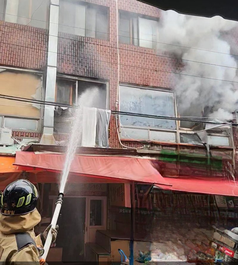 [진주=뉴시스] 정경규 기자 = 8일 오전 10시11분께 경남 진주시 수정동 중앙시장내 상가 2층에서 화재가 발생해 출동한 소방대에 의해 26분만에 진화됐다.