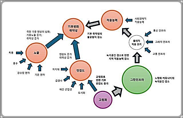 분석 결과, 고령인구가 증가한 커뮤니티에서는 그린 인프라의 공급이 줄어들어 기후변화 취약성이 더 크게 나타났다.