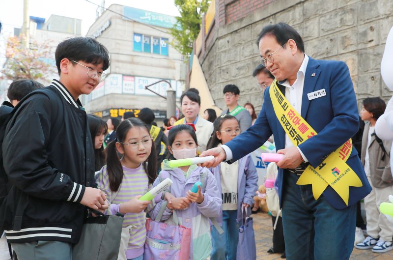 서 교육감은 이날 등교하는 학생들에게 보행 안전수칙을 새긴 홍보용품을 직접 나눠주며 ▲횡단보도 안전하게 건너기 3원칙(서다·보다·걷다) ▲보행 중 스마트폰 사용하지 않기 ▲교통신호 지키기 등 안전 보행의 중요성을 설명했다.