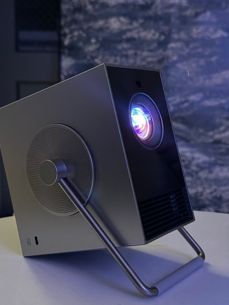 LG전자 포터블(휴대용) 빔프로젝터 'LG 시네빔 큐브'의 첫인상이다. 보통의 크고 투박한 빔프로젝터와는 확연히 다른 모습이었다. 지난 1월 'CES 2024'에서 처음 선보이며 이목을 집중시킨 LG 시네빔 큐브를 10일간 사용해 봤다.