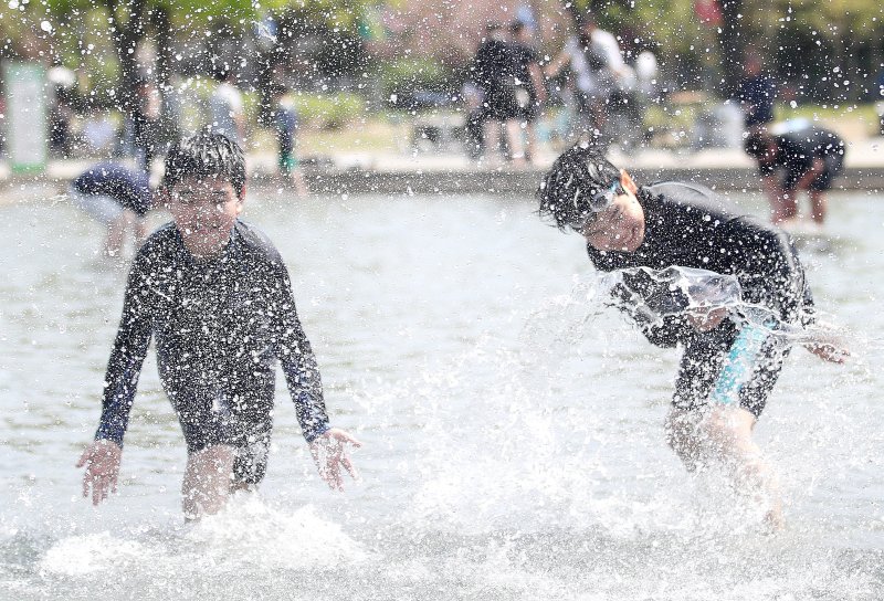 (수원=뉴스1) 박대준 기자 = 14일 경기지역의 한낮 기온이 30도 안팎을 오르내리며 여름날씨를 보였다. 4월 기록으로는 역대 최고 기온이다.