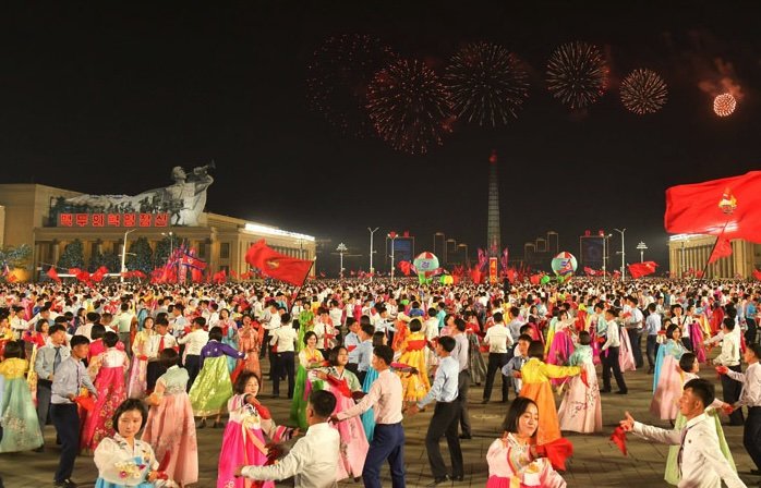 15일 북한 노동당 기관지 노동신문은 태양절을 하루 앞둔 14일 저녁 수도 평양의 김일성 광장에서 청년학생들의 야회 및 축포발사가 진행됐다고 보도했다.