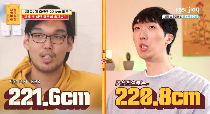 김병오는 220.8㎝의 엄청난 체구로 키를 비교해 보기 위해 일어난 2m 서장훈을 가리며 20㎝의 키 차이를 보여줬다. 역시 농구선수 출신이자 큰 키로 유명한 하승진의 키가 221.6㎝, 자신의 키는 공식적으로 220.8㎝라고 했다.