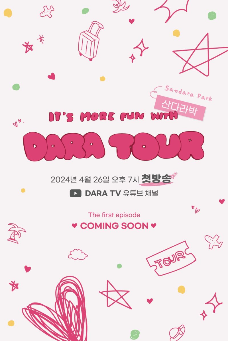 산다라박은 지난 16일 자신의 공식 소셜 미디어를 통해 새 유튜브 콘텐츠 '다라투어'의 포스터를 공개하고 론칭을 예고했다.