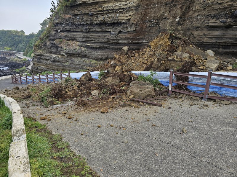 17일 제주도 등에 따르면 이날 오전 제주시 한경면 수월봉 화산쇄설층 인근 산책로에서 절벽에서 떨어진 것으로 보이는 흙과 돌들이 발견됐다.