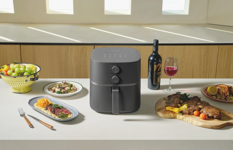 쿠첸이 올해 처음 선보인 이번 에어프라이어 신제품은 공간 효율성이 높은 사각 바스켓을 갖춰 여러 음식을 한 번에 조리할 수 있다.