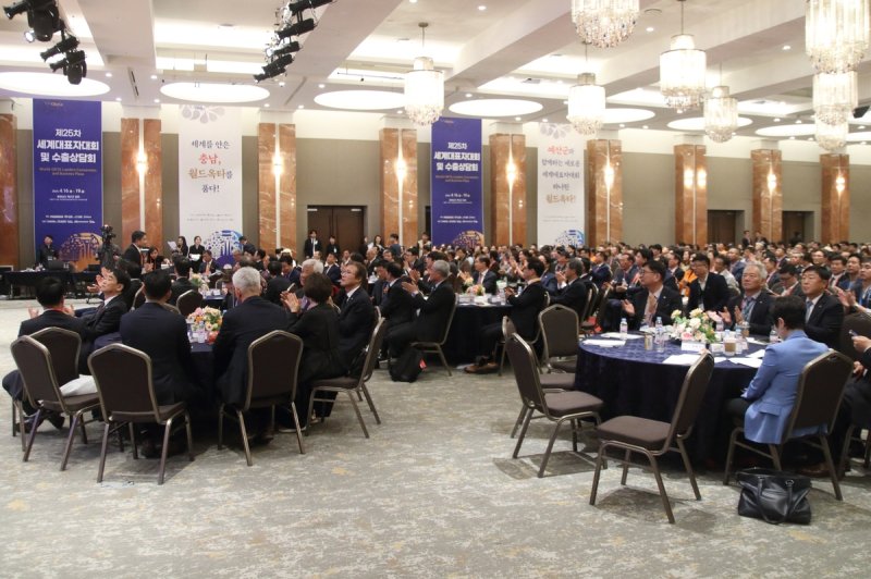 (예산=연합뉴스) 성도현 기자 = 46개국 98개 도시에서 활동하는 한인 경제인 등 800여명이 참가한 '제25차 세계대표자대회'가 충남도 내 중소기업들이 500억원 규모의 수출 상담 성과를 올리면서 막을 내렸다.
