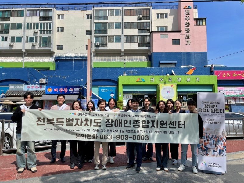 (전북=뉴스1) 김동규 기자 = 전북자치도사회서비스원은 19일 제44회 장애인의 날을 기념해 전주시 중앙시장에서 ‘연합 홍보 캠페인’을 실시했다고 밝혔다.