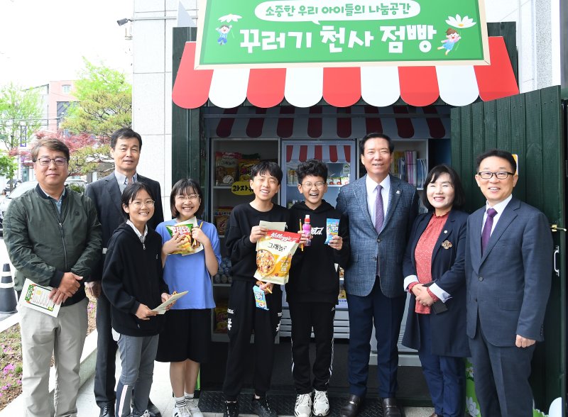 [거창=뉴시스] 서희원 기자 = 경남 거창군은 22일 종합사회복지관에서 구인모 거창군수를 비롯해 김인수 교육장, 군의원, 전영태 거창초등학교 교장과 학생 대표, 후원자와 자원봉사자 등 40여명이 참석한 가운데 전국 최초의 어린이 전용 공유냉장고 ‘꾸러기 천사 점빵’ 개소식을 개최했다.