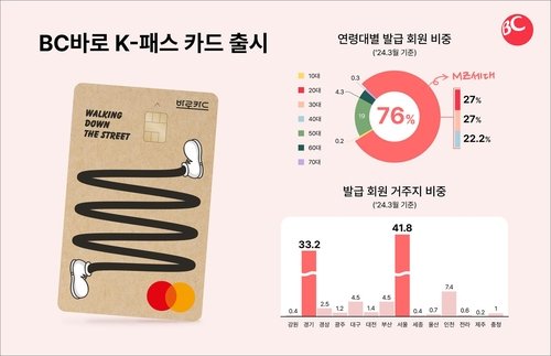 한편 BC카드가 BC바로 K-패스 카드의 전신인 BC바로 알뜰교통플러스 카드의 지난달 기준 이용자를 분석한 결과, MZ세대(1980년대 초~2000년대 초 출생)로 분류되는 20~40대가 76.2%로 가장 큰 비중을 차지했다.