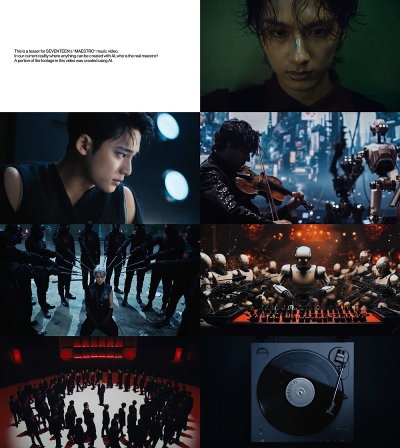 소속사 플레디스 엔터테인먼트에 따르면 '마에스트로' 뮤직비디오에는 실제 AI가 생성한 장면이 삽입됐다. 이는 최첨단 기술이 인간을 대신해 예술을 창조한다는 뮤직비디오 스토리의 설정이 현실에 근접했음을 보여준다. 창작의 주체가 뒤바뀐 상황을 정면으로 마주한 세븐틴이 앞으로 이 위기를 어떻게 헤쳐 나갈지 뮤직비디오 본편을 향한 기대감이 커지고 있다.
