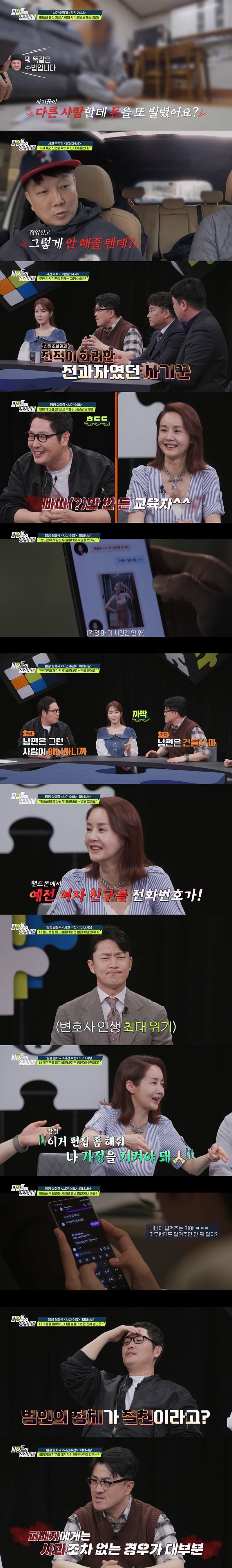 사연 속 탐정도 "해킹범은 금전 협박부터 시작한다. 이건 100% 주변 사람 짓이다"라며 의뢰인에게 경고했다. 그러자 의뢰인은 단번에 남편을 지목했고, 이미 불륜 전적이 있는 그는 의뢰인이 구설수에 오르자 바로 이혼 서류를 내밀어 수상함을 증폭시켰다. 이에 남성태 변호사는 "공유한 적 없는데 내 휴대폰 속 데이터를 가져갔다면 명백한 불법이다"라고 말했다. 그러자 김가연은 "딸아이 휴대폰 속에 너무 귀여운 사진이 있는데, 창피하다고 안 줘서 제가 몰래 빼간 적이 있다"고 고백했다. 고심하던 남성태 변호사가 "이건 범죄다"라고 판결하자, MC 데프콘은 "김 형사님 어서 와서 쇠고랑 채워"라며 격한 리액션을 선보여 웃음을 선사했다. 김가연은 "이거 편집 좀 해달라. 가정을 지켜야 한다"며 너스레를 떨었다.