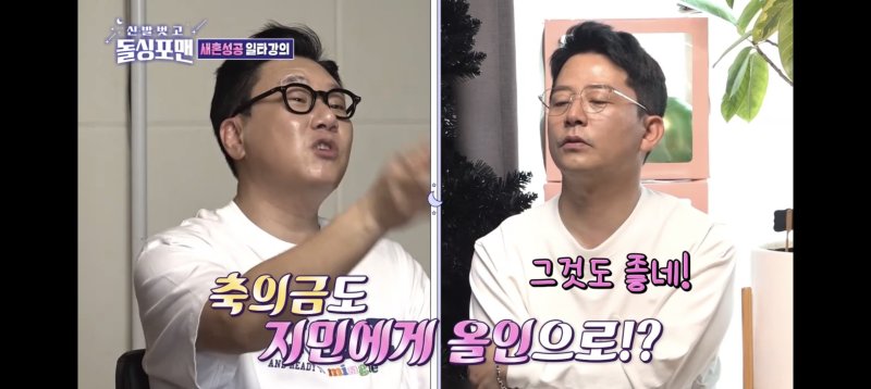김준호는 4월30일 방송된 SBS TV 예능물 '신발 벗고 돌싱포맨'(이하 '돌싱포맨')에서 멤버들이 자신에게 들어오는 축의금을 모두 김지민에게 주라고 제안하자 "그것도 좋죠"라고 받아들였다.