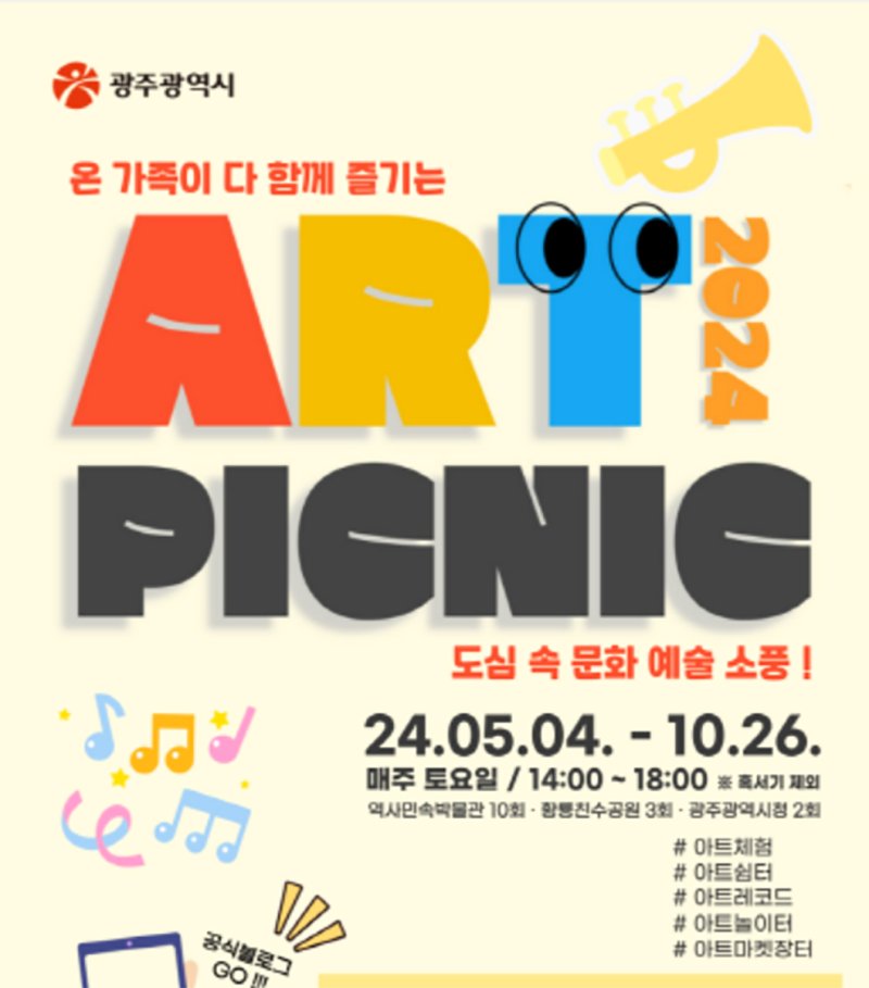 광주시는 도심 속 문화예술 소풍 '2024 아트피크닉'을 5일 중외공원 광주역사민속박물관에서 개막하고 오는 11월 2일까지 진행한다고 2일 밝혔다.