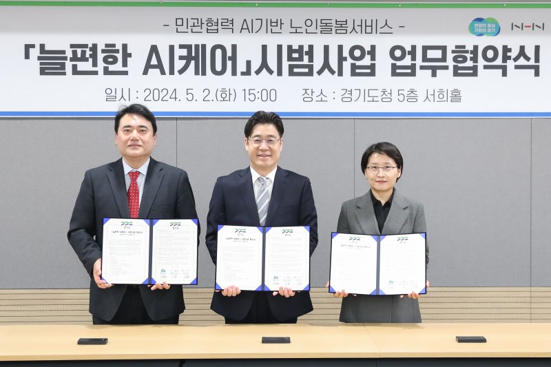 한편 도는 이날 '늘편한 AI케어' 시범 추진을 위해 NHN-와플랫주식회사, 경기도재가노인복지협회와 업무협약을 체결했다. 업무협약식에는 오병권 경기도 행정1부지사, 황선영 NHN와플랫(주)대표이사와 이종화 경기도재가노인협회장이 참석했다.