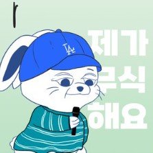 해당 게시물을 살펴보면 어도어 소속사의 대표 캐릭터가 민 대표가 기자회견에서 착용했던 LA다저스 로고가 그려진 모자와 초록색 스트라이프 티셔츠를 입고 있다.