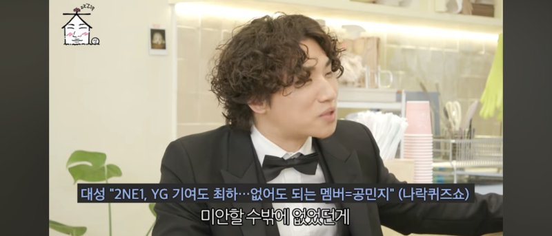 대성은 3일 자신이 운영하는 유튜브 채널 '집대성'에 올라온 '전 직장동료와 YG 앞담화'라는 제목의 영상에서 게스트로 나온 2NE1 멤버 산다라박에게 "제가 얼마 전에 심기를 좀 불편하게 했다"면서 고개를 숙였다.