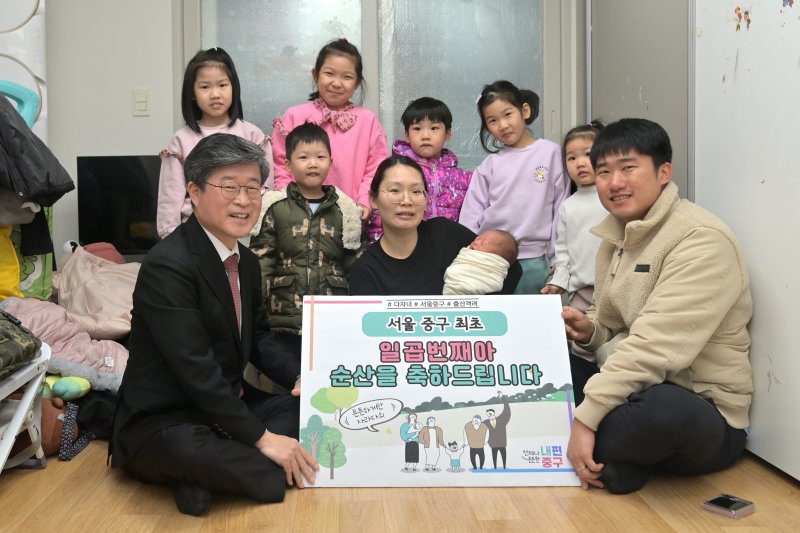 6일 서울 중구청에 따르면 부부는 3월 '신혼·신생아' 대상 전세임대주택을 신청하고 이달 말 발표를 기다리고 있다. 현재 중구 소재 재개발임대아파트 47.29㎡(14.3평)에서 부부를 포함한 아이 7명이 함께 살고 있어 넓은 집으로 이사 가길 희망했고 중구와 금호석유화학그룹이 적극 도움을 주기로 약속한 데 따른 것이다.