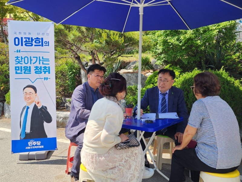 (청주=뉴스1) 김용빈 기자 = 더불어민주당 이광희(청주 서원·61) 당선인이 '찾아가는 민원 청취'로 지역민을 위한 임기를 시작했다.