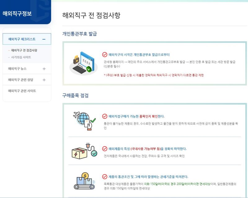 이를 위해 해외직구정보 메뉴의 하위메뉴에 '해외직구 금지물품' 메뉴를 신설한다. 각 부처의 소관법령에 따라 직구가 금지된 물품 목록을 제공함으로써 소비자가 직구 금지 물품을 구매해 발생할 수 있는 폐기, 통관금지, 반품비용 등의 피해를 줄이려는 것이다.