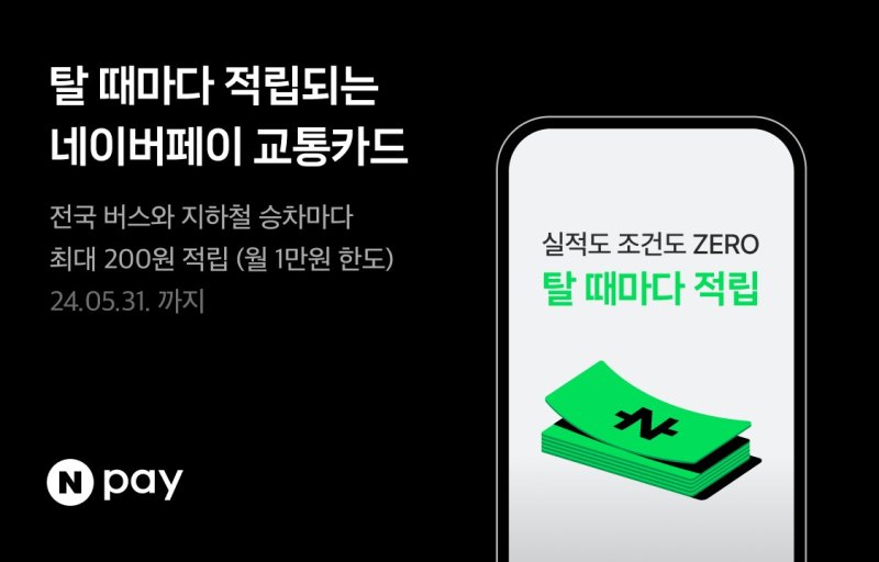 네이버페이는 31일까지 모바일 교통카드로 전국의 대중교통을 이용할 때마다 네이버페이 포인트를 제공한다.