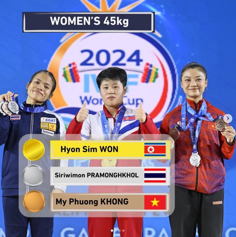 조중통은 "우리 선수들은 2024년 아시아역도선수권대회가 끝난 후 12개의 세계기록을 가지고 있었다"며 "얼마전 2024년 국제역도연맹 세계컵경기대회 여자 45kg급 추켜올리기에서 원현심선수가 세계신기록을 수립함으로써 13개가 됐다"고 밝혔다.