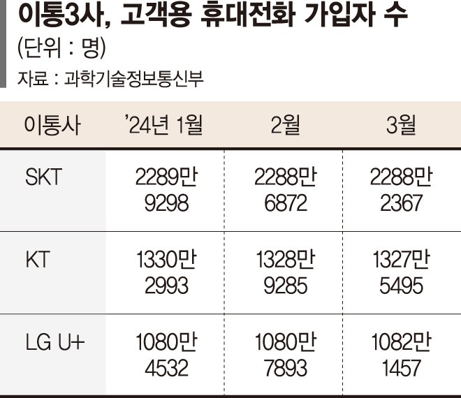 이통 3사의 고객용 휴대전화 가입자 수는 2021년 상반기를 기점으로 감소세를 이어왔다.