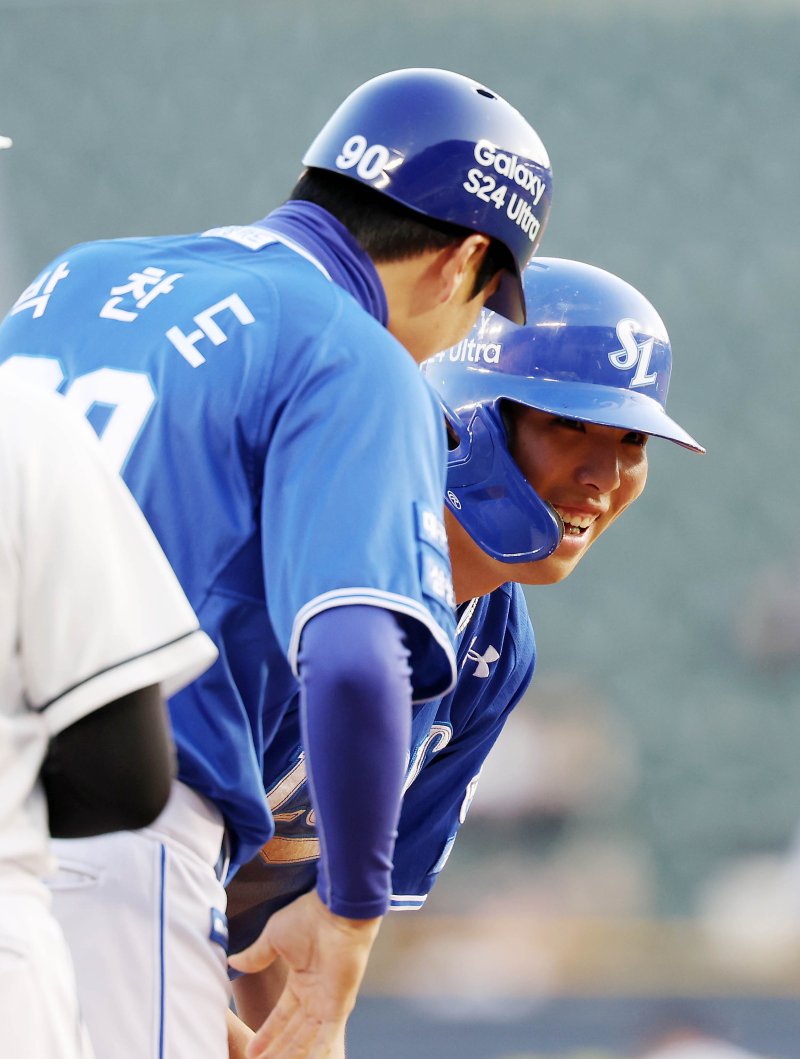 [서울=뉴시스]박윤서 기자 = 프로야구 삼성 라이온즈의 내야수 김영웅과 이재현이 부상에 대한 우려를 지웠다.