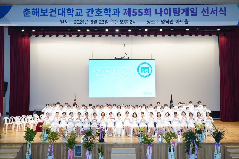 [울산=뉴시스]구미현 기자 = 춘해보건대학교는 23일 간호학과 3학년 학생을 대상으로 명덕관 아트홀에서 제55회 나이팅게일 선서식을 가졌다.