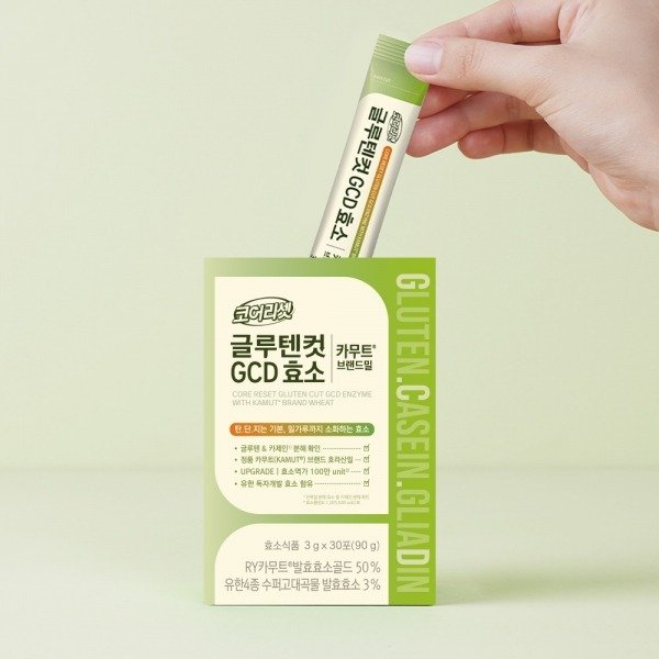 신제품 글루텐컷 GCD효소는 기존 '코어리셋 비건효소' 제품에서 탄수화물·단백질·지방은 물론 GCD(글루텐, 카제인, 글리아딘) 99% 분해를 확인한 효소로 업그레이드 됐다.