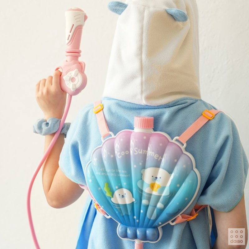 물놀이용품은 조개 무늬를 살려 디자인한 조개 배낭물총(2.5ℓ)과 생활 방수가 돼 수영복이나 갈아입을 옷을 넣을 수 있는 방수백(15ℓ), 물놀이 후 체온 유지를 위해 걸치기 좋은 해양 동물 디자인의 후드 가운 등이 준비돼 있다.