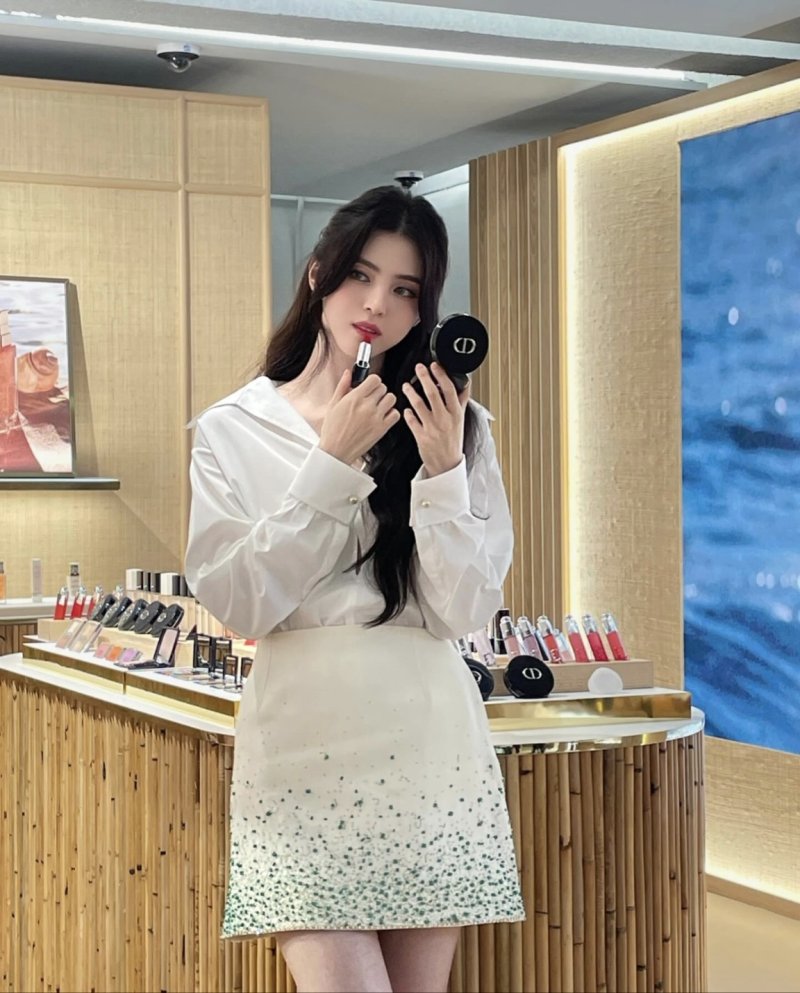 사진 속 한소희는 흰색 블라우스에 아이보리색 치마를 입고 청순한 매력을 발산했다.