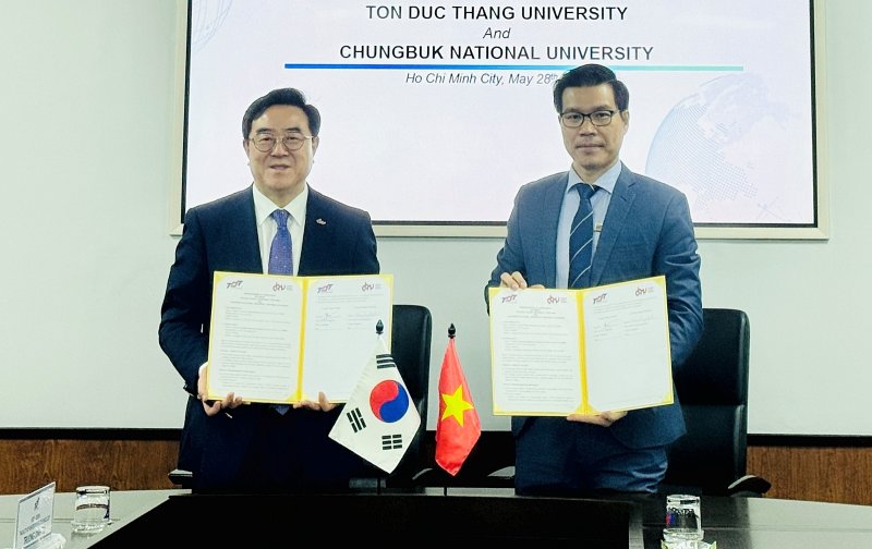 이날 협약식에는 충북대 고창섭 총장과 유태수 국제교류본부장, 톤득탕 대학의 짠 정 다오(TRAN TRONG DAO) 총장, 딩 황 바익 국제협력연구소장(DINH HOANG BACH) 등이 참석했다.