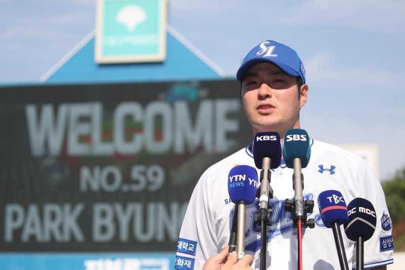 (대구=뉴스1) 문대현 기자 = 2년간 몸담았던 KT 위즈를 떠나 삼성 라이온즈로 전격 트레이드된 거포 박병호(38)가 좋은 활약으로 삼성 팬들의 기대를 충족하겠다는 각오를 전했다.